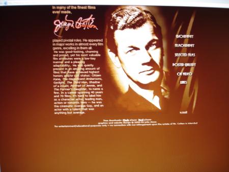 Acteur américain né à Petersburg, Virginia, en 1905, décédé à Westmood, Californie en 1994. Débute comme assistant régisseur à Broadway en 1930 après avoir occupé divers métiers. Rejoint la troupe d'Orson Welles (Mercury Theatre) en 1937, qui l'appelle à Hollywood pour interpréter le rôle de Jedediah Leland dans Citizen Kane (1941). - Il joue ensuite le rôle d'Eugene Morgan dans The Magnificent Amberson (du même réalisateur, en 1942). - Hitchcock l'engage l'année suivante pour jouer le rôle de l'oncle Charlie dans Shadow of a Doubt. - Après Gaslight (Cukor - 1944), Duel in the Sun (Vidor - 1947), Under Capricorn (Hitchcock 1949) et The Third Man (Reed - 1949) où il incarne un Holly Martins inoubliable au côté d'une émouvante Alida Valli et Niagara (Hathaway, 1953), sa carrière décline rapidement. - Son personnage plutôt introverti, sensible, intelligent se prête mal aux rôles qu'il accepte dans de trop nombreux westerns italiens ou espagnols : une exception : son rôle de William Simonson dans Soylent Green de R. Fleisher (1973). - On le reverra également dans le rôle du conférencier-docteur au début d'Heaven's Gate de Cimino (1980).